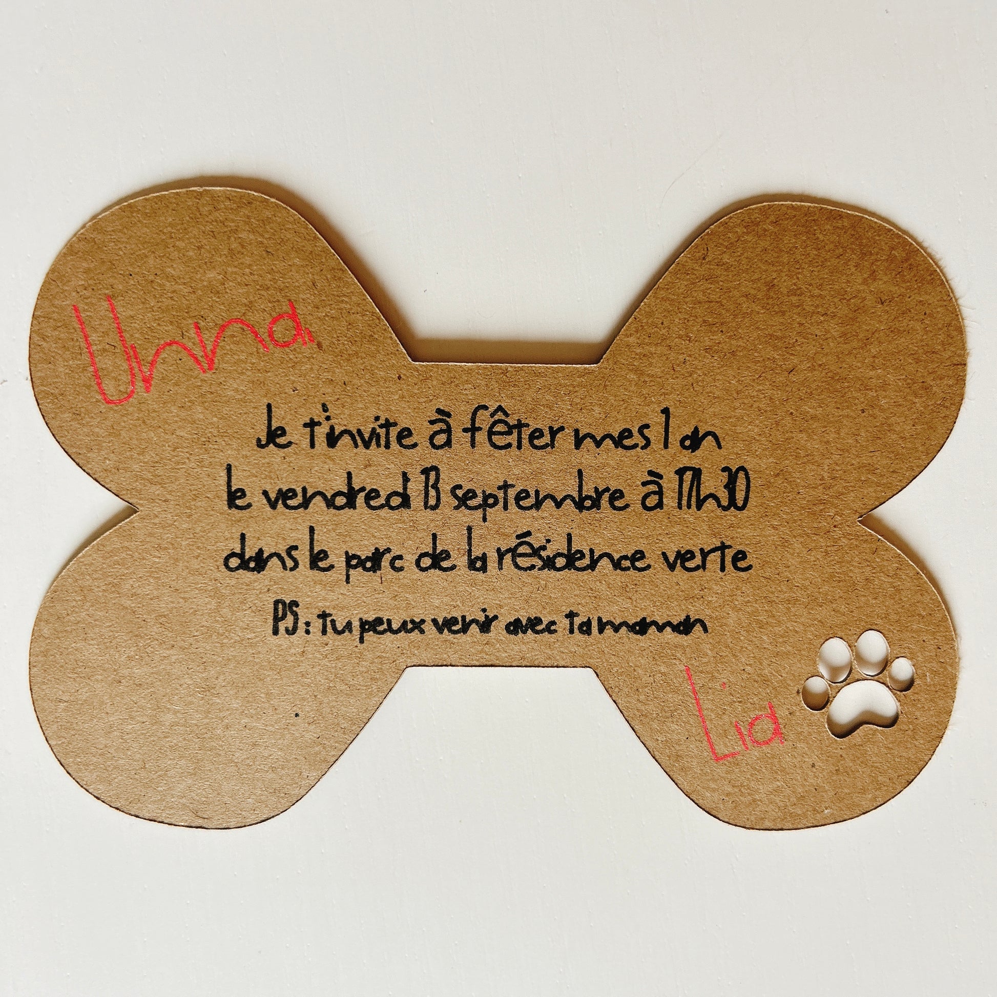 Ensuite, par chien invité, le tarif est de 5€. Pour chaque chien en plus, ce tarif comprend la verrine personnalisée de friandises, la pancarte du chien, et un sticker de la star du jour.